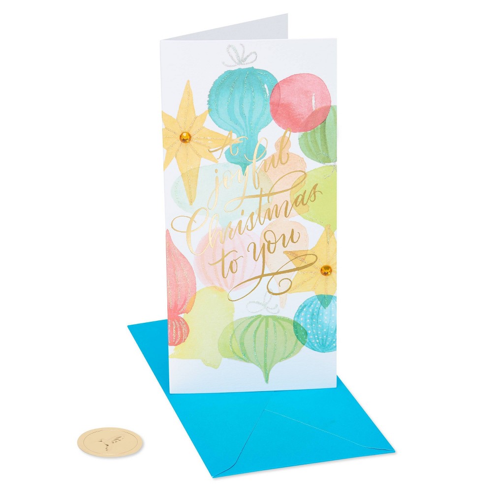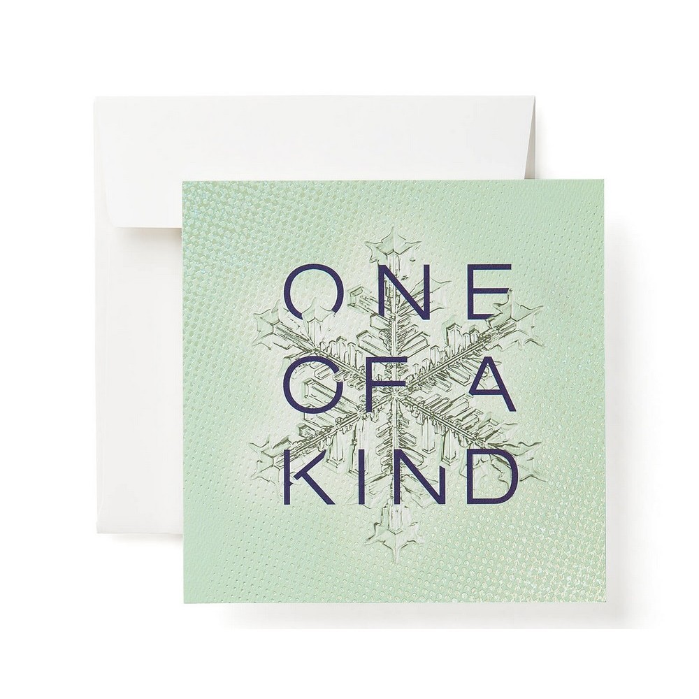 Share all the Christmas feels! From American Greetings, Present Company Christmas cards are the season s greetings you need to make the holidays less hectic and more meaningful. This greeting card sparkles with an intricate snowflake photo and the words One of a Kind printed in bold capital letters on a background of shimmering holographic foil dots. Thick, cotton-blend paper adds a quality feel. The warm message inside makes it perfect for sharing with parents (mom, dad), close friends and relatives, or a romantic partner (husband, wife, boyfriend, girlfriend). When you re ready to connect, place the square card in its crisp white envelope and affix a unique seal printed with a bonus message. With so many amazing, one-of-a-kind people in your life, you ll always have a reason to celebrate. Present Company cards will make the holidays happier for everyone! Pattern: Shapes.