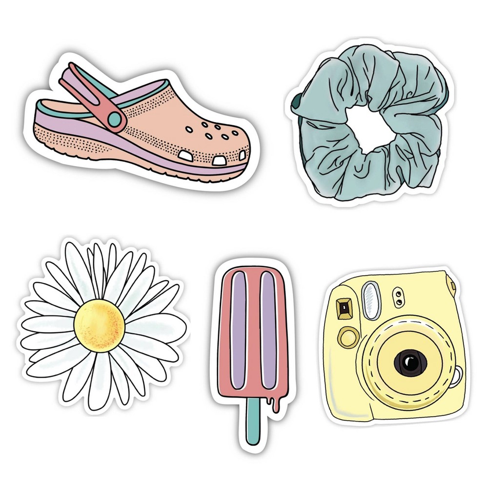 Cool multicolor aesthetic themed stickers. Our stickers are waterproof and weather resistant, making them great for indoor and outdoor uses. Decorate water bottles, laptops, phone cases, coolers, suitcases, planners, bikes, skateboards, kayaks, and more. Big Moods provides high quality vinyl stickers made to spread happiness. Express yourself with sticker art that is made for every big mood! This sticker 5 pack is perfect for VSCO Girls or anyone who enjoys a daisy, scrunchie, ice cream, and more. Get them for yourself, or as a gift for family and friends! Check price |