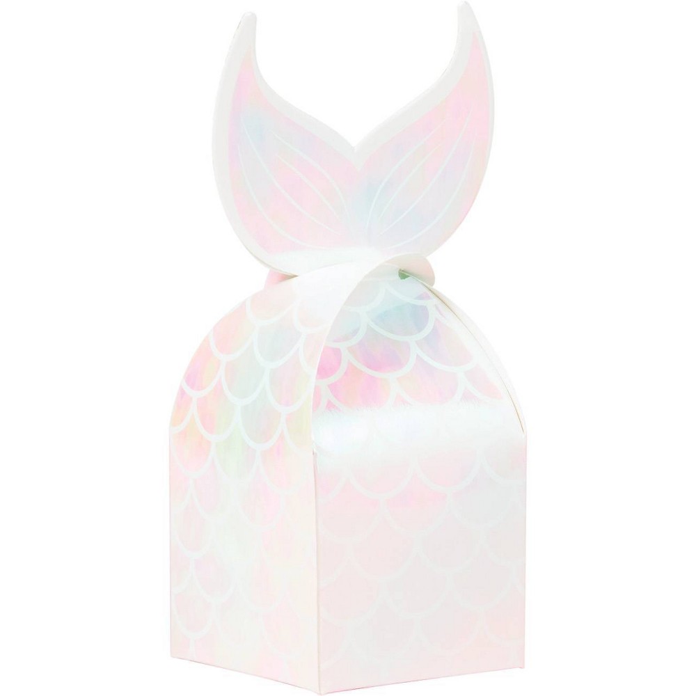 Give your guests a present to take home inside the Iridescent Mermaid Party Favor Boxes. These purple boxes measure 2.75" x 7.5" and are covered in a pattern of scales, with two fins at the top to complete the mermaid's tail. Sold in packs of 8, these favor boxes can be combined with any of our Iridescent Mermaid Party party supplies.