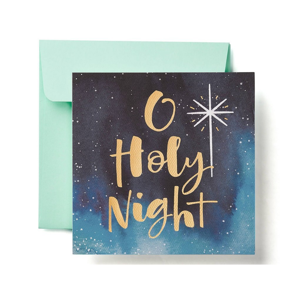 Share the peace, love and joy that fill the season with a significant other, close family member or relative. From American Greetings, Present Company Christmas cards are the season s greetings you need to make the holidays more meaningful. You can share your Christian faith with this uplifting religious and spiritual card featuring a star-filled sky and the handwritten words O Holy Night embellished with shimmering gold foil. Thick, cotton-blend paper stock with a textured surface gives a quality feel. You can even add a preview message to the envelope using the unique seal. With so many amazing people who make your life feel blessed, tis the season to celebrate them all! Pattern: Shapes.
