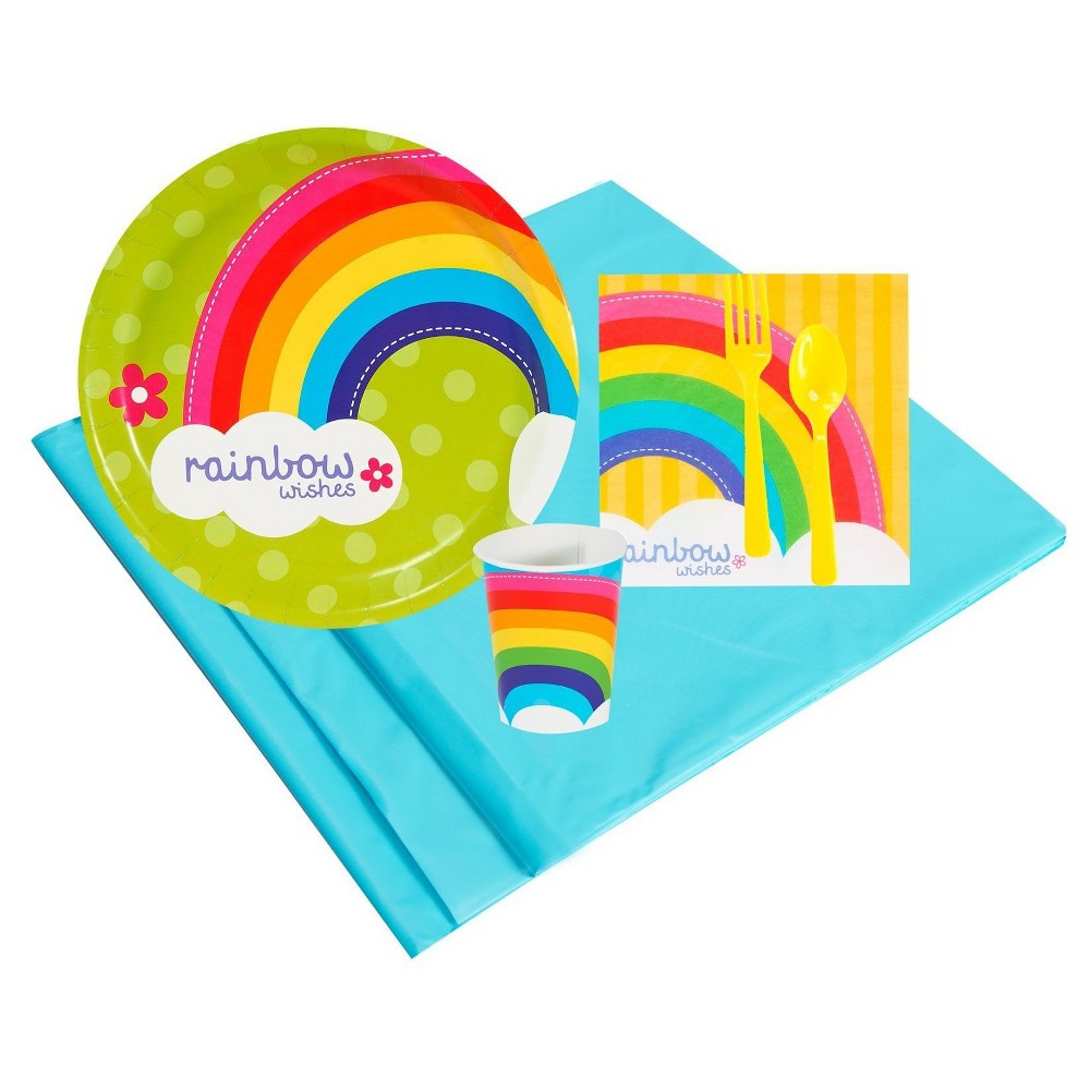 A party is an exciting occasion to spread love and happiness to everyone on your guest list, and the Rainbow Wishes Guest Party Pack makes that goal easier than ever. This convenient party-in-a-box set pictures adorable rainbow designs on bright and cheery patterns and backgrounds. It's a great way to take the stress and hassle out of your pre-party planning routine, which lets you be at your best when the guests arrive. Size: 8 Guest Pk.