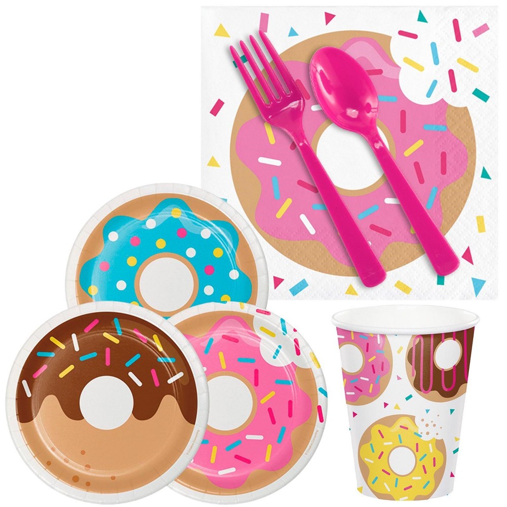 16ct Donut Time Snack Pack : If you have a sweet tooth, then you are going to love this Donut Time Snack Pack for 16. Your event will be filled with the best items to decorate your bash with, and everyone is going to love it. There is nothing like keeping your theme alive with this kit. It's going to be a great time. Includes: (16) Dessert Plates, (16) 9oz Paper Cups, (32) Beverage Napkins and (16) Forks and Spoons.