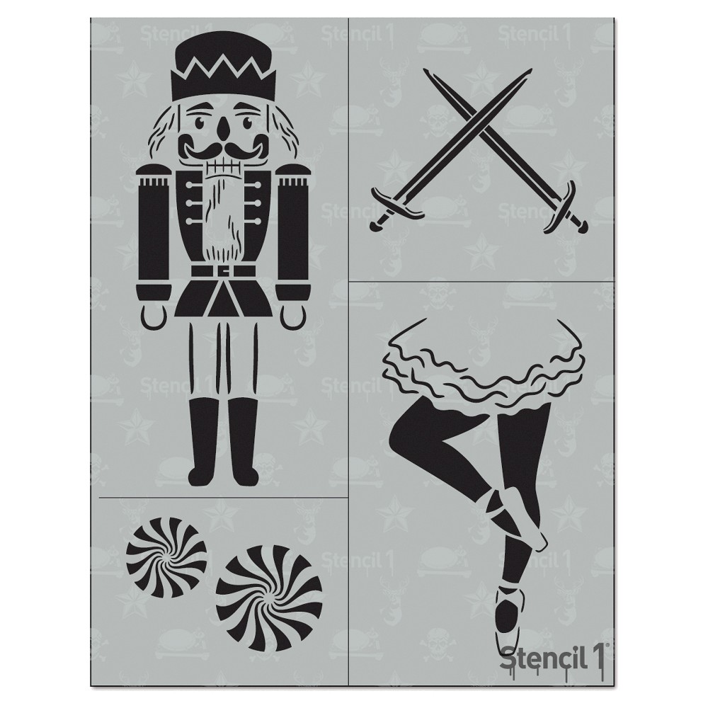 Kick off the holidays with the Stencil1 4 Pack Nutcracker stencil. Giving you multiple stencils, cut on one sheet, including a Nutcracker, crossed swords, peppermint candies and a ballerina on pointe. Perfect for holiday cards, wrapping paper and for scrapbooking holiday memories. Layer with another Stencil1 stencil for a more complex design. Made of mylar, this stencil is washable, reusable and compatible with paints, inks, markers, pencils and more. Can be applied to a variety of materials, including wood, paper, fabric, metal, ceramic, concrete and glass. Show us how you create with Stencil1 by tagging #stencil1 for a chance to be featured on Stencil1.com.