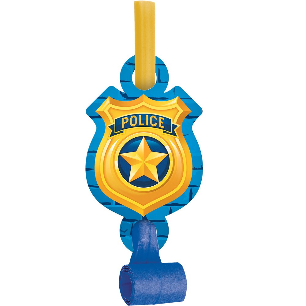 Add some flair to your party with the Police Party Blowouts. Featuring a police badge cutout, each of these party blowers is a sure bet to add a little more noise to the get-together! Sold in packages of 8, these party enhancers coordinate with our other police theme party supplies! The Police Party Blowers makes set up easy, and clean up a breeze!