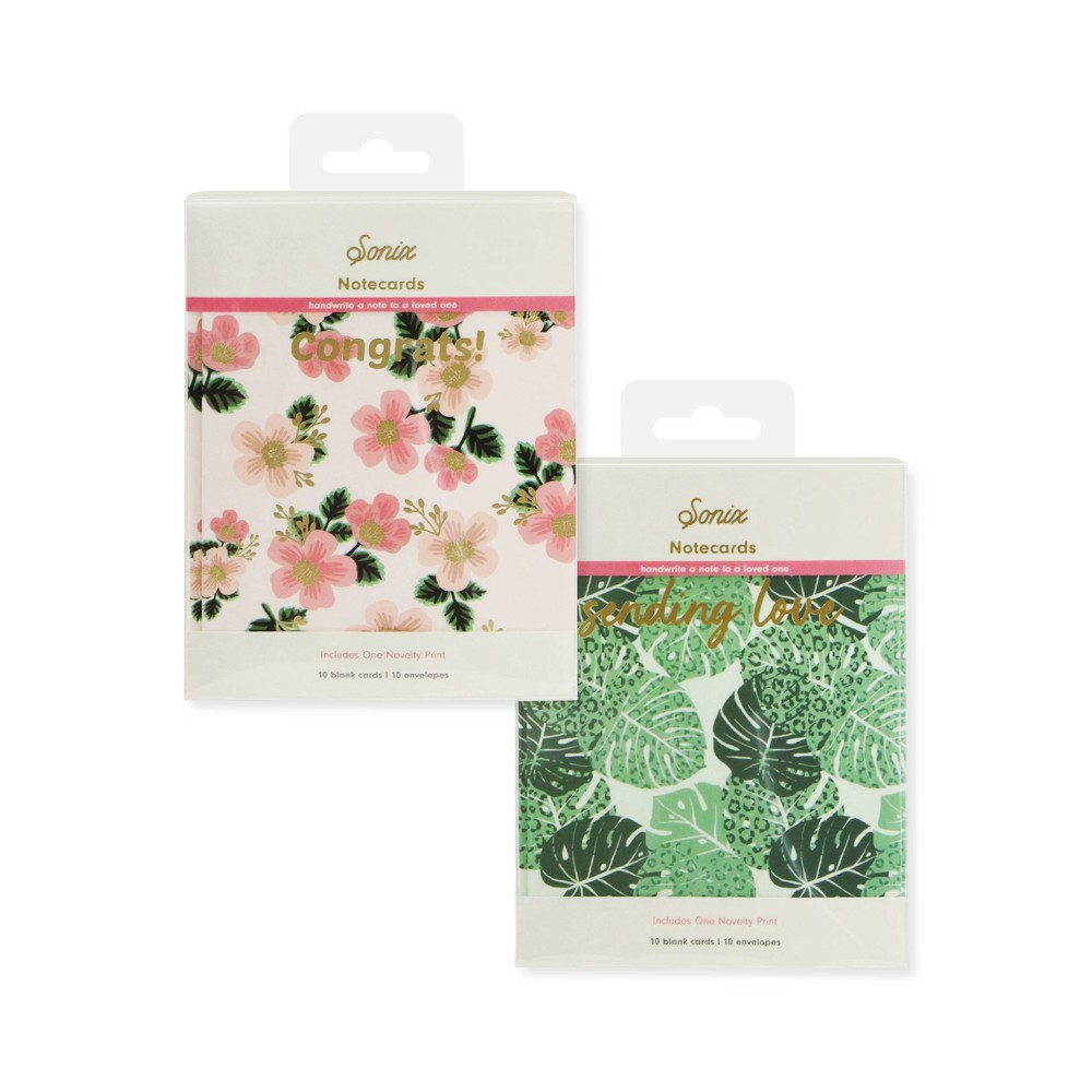 Send a sweet and thoughtful message to a friend or loved one with the Congrats and Sending Love Occasion Bundle Card Set from Sonix. This bundle features our two novelty prints, Southern Floral and Monstera, with gold foil details and blank interior ready for your personalization. Includes 20 cards and envelopes with Congrats! and Sending Love'' greeting stickers. Whether it s on your desk or writing space, you ll be glad to have these occasion cards at your fingertips!